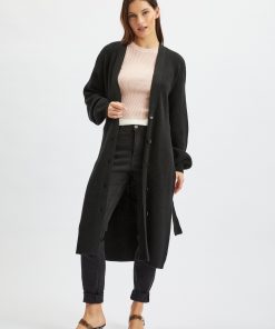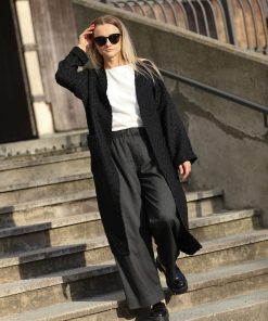 Czarny Długi Kardigan