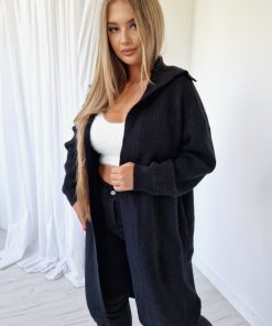 Długi Czarny Kardigan